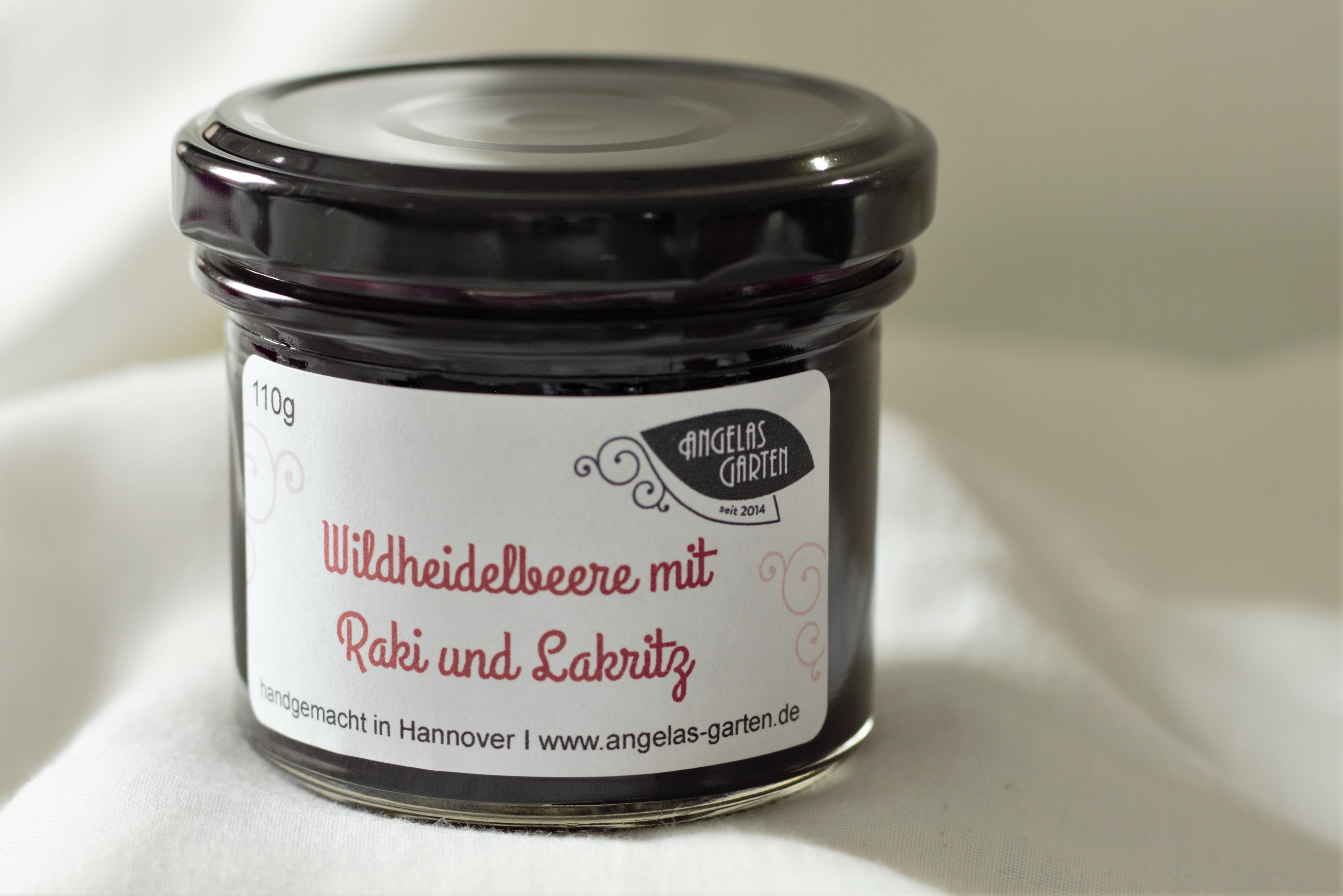 Zutaten: Wildheidelbeeren und Wildheidelbeersaft 66%, Gelierzucker 25% (Zucker, Geliermittel Pektin, Säuerungsmittel Zitronensäure, Konservierungsmittel Kaliumsorbat, geh. Sonnenblumenöl), Orangensaft, Raki 2% (Anisschnaps 45 % Vol), Lakritz Pulver (reines Lakritzwurzelextrakt)